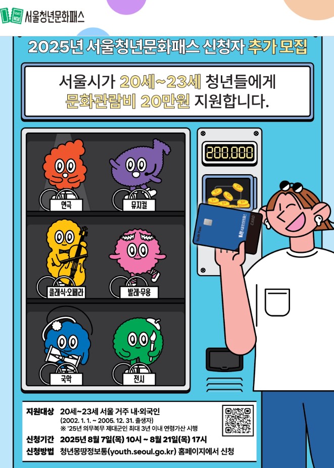 - 문의: ☎ 1533-3427 (서울청년문화패스 콜센터)