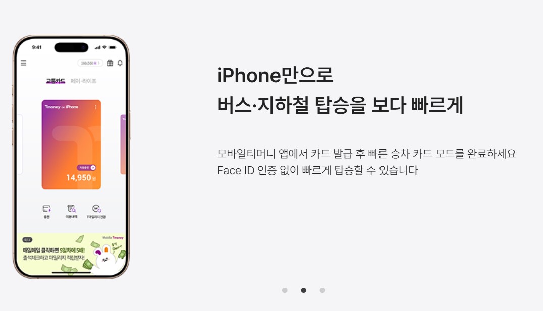 이제 아이폰 하나로 실물 카드 없이 티머니를 사용하는 교통결제이 가능해졌습니다. Express 모드 활성화, 자동충전 설정, 모바일 등록까지 준비하시면 더욱 스마트한 외출과 출퇴근길을 즐기실 수 있어요. 지금 바로 등록해보세요!