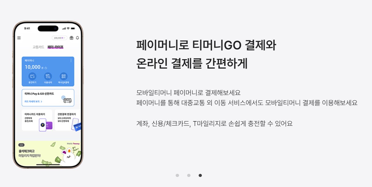 이동을 편하게 세상을 이롭게 티머니와 함께 스마트한 이동과 편리한 결제 서비스를 이용해보세요!