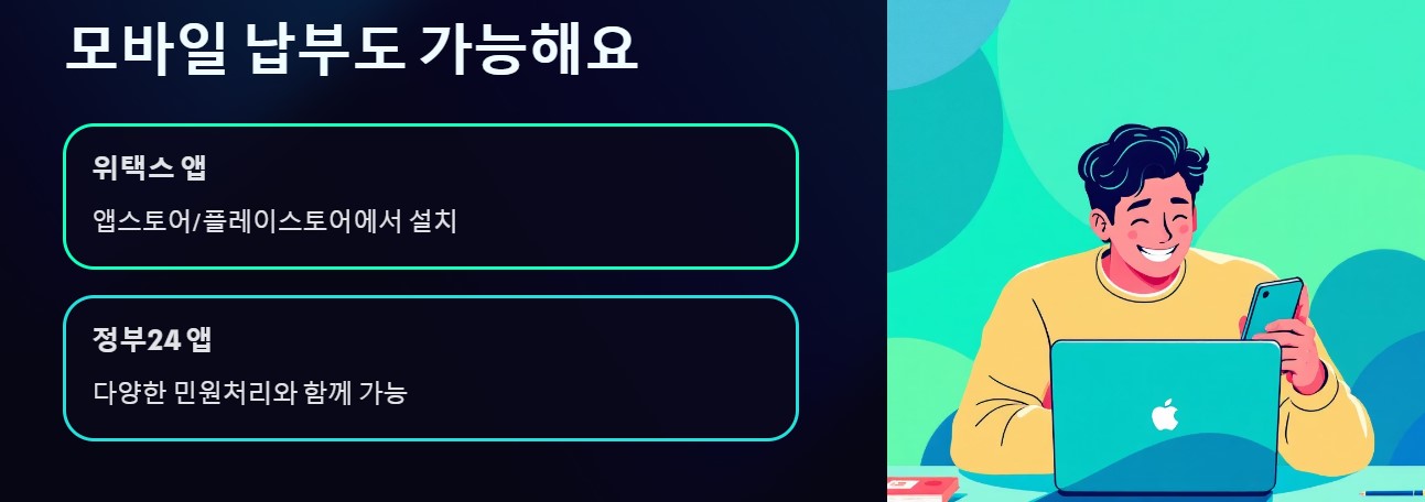 지금 바로 위택스 또는 정부24에 접속해 고지 내역을 확인하고, 납부 절차를 진행해보세요.