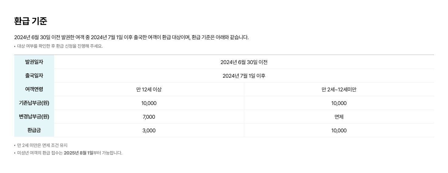 2024년 7월 1일자로 출국납부금이 7,000원으로 인하되고, 2세 미만에서 12세 미만으로 면제 연령이 확대되면서 많은 이용객이 차액 혹은 전액 환급 대상이 될 수 있습니다.