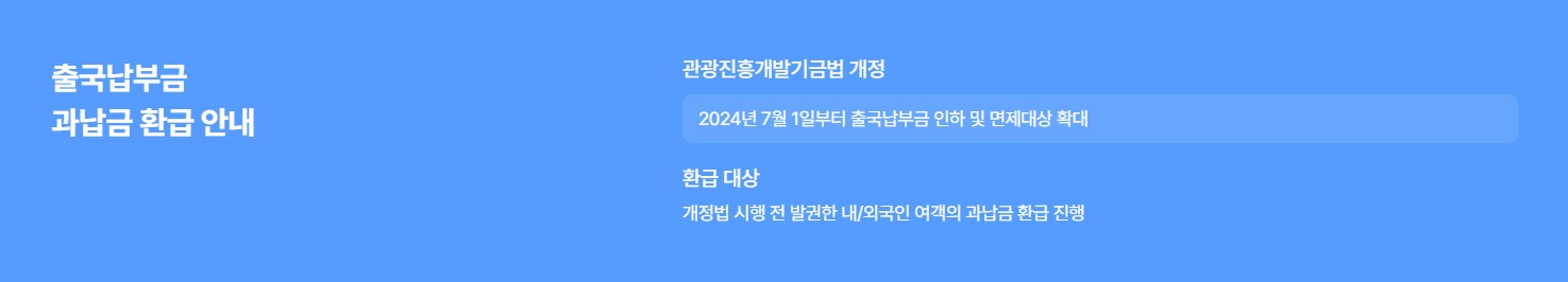 - 2024년 7월 1일부터 출국납부금이 7,000원으로 인하