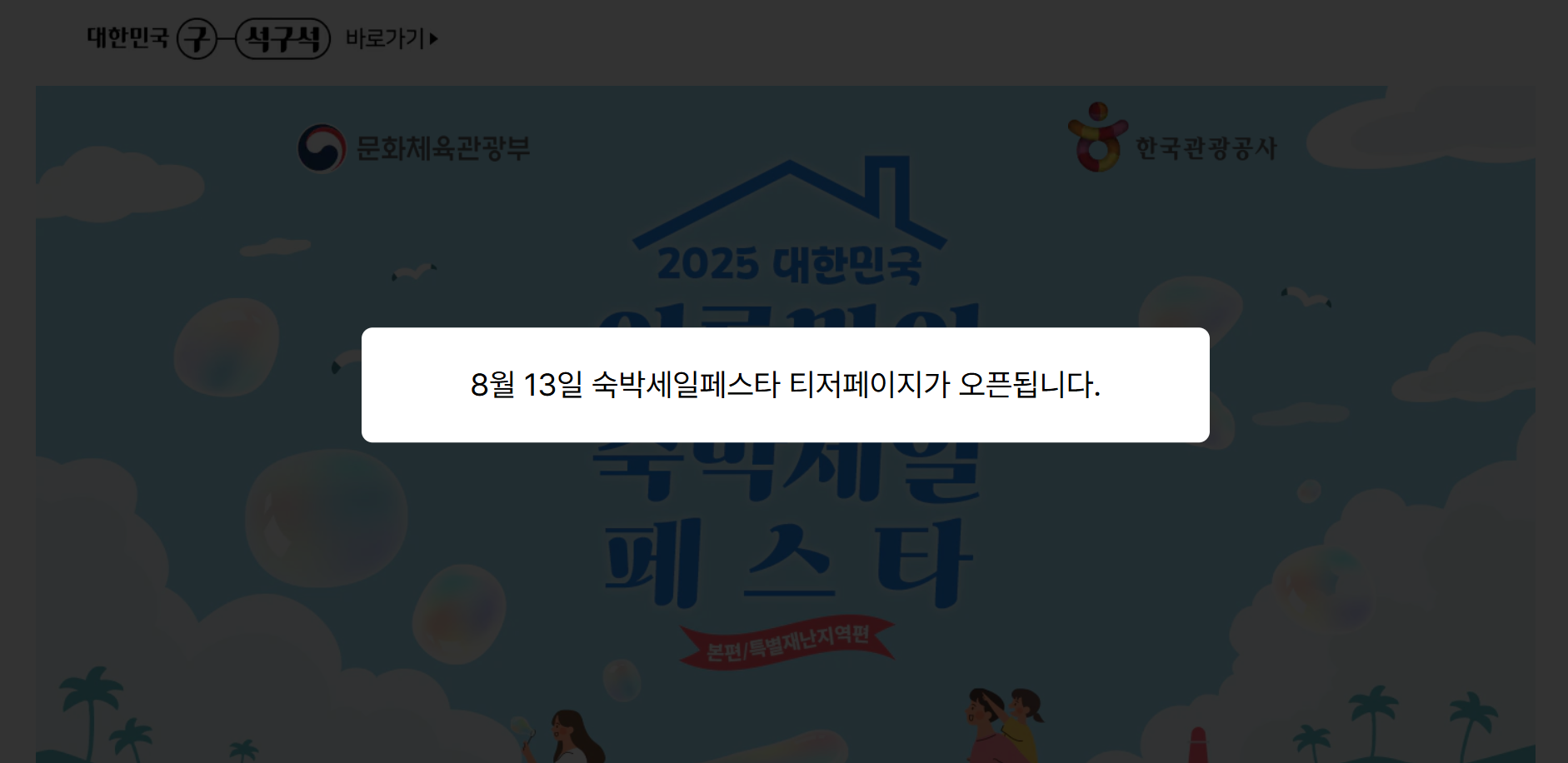 8월 13일 숙박세일페스타 티저페이지가 오픈됩니다.