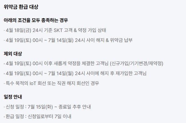 - 위약금 면제 및 환급 (4월 19일 ~ 7월 14일 해지 고객)